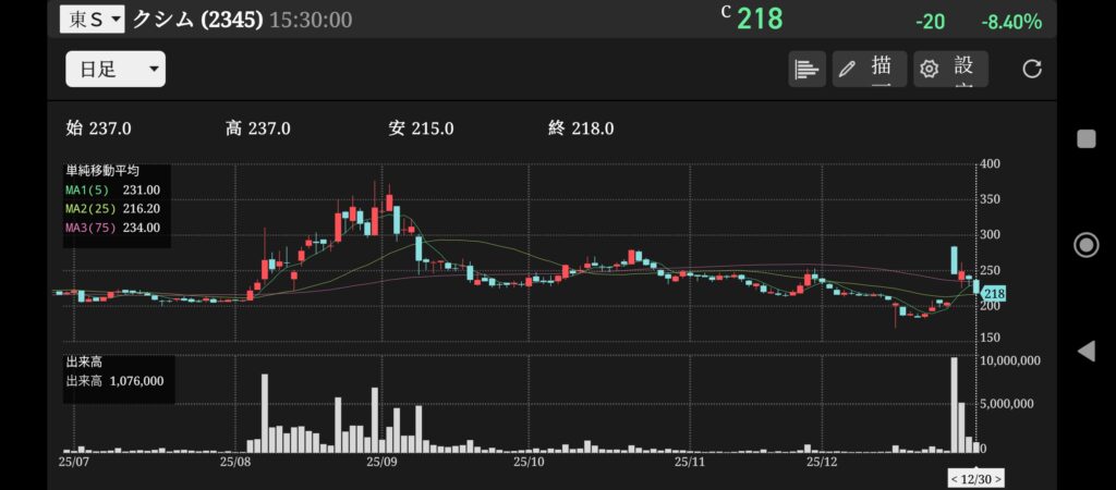 この5つの要素によって仕手株であると断定いたしました。