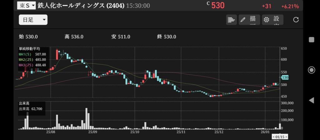 500円割れは、大きな動きにつながると思います。