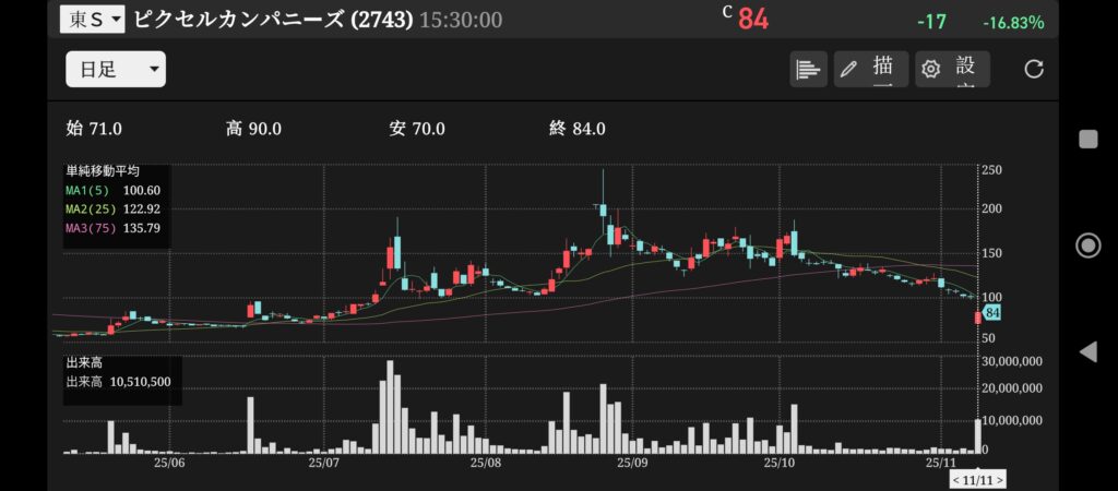 この5つの要素によって仕手株であると断定いたしました。