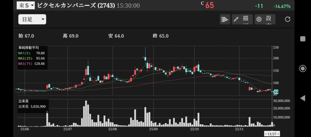 ですが、出来高が少ないため、大きな動きになる可能性は低いです。