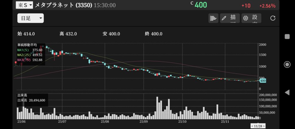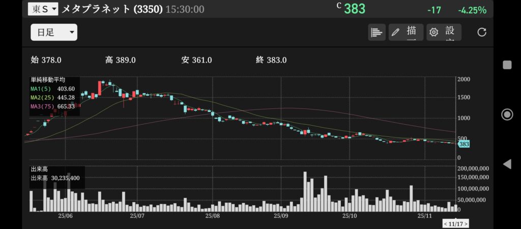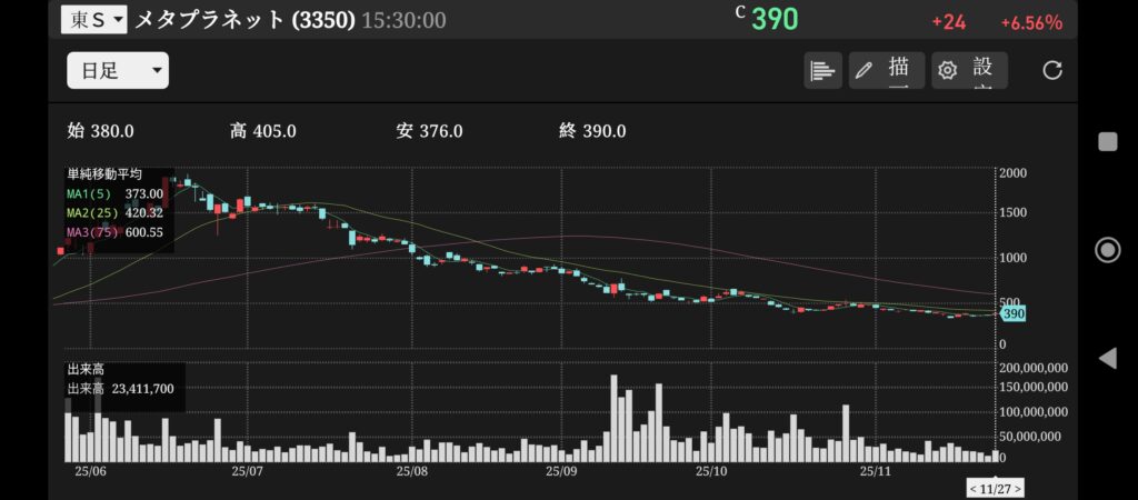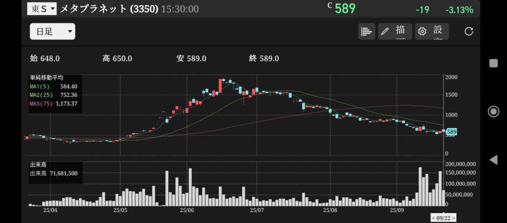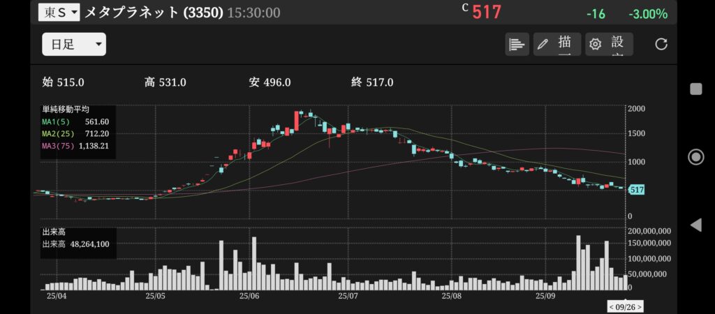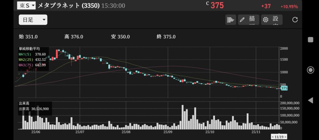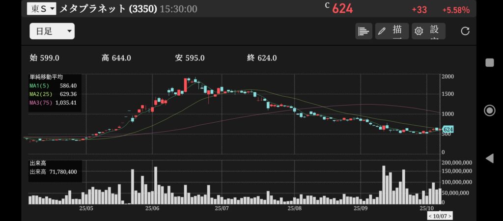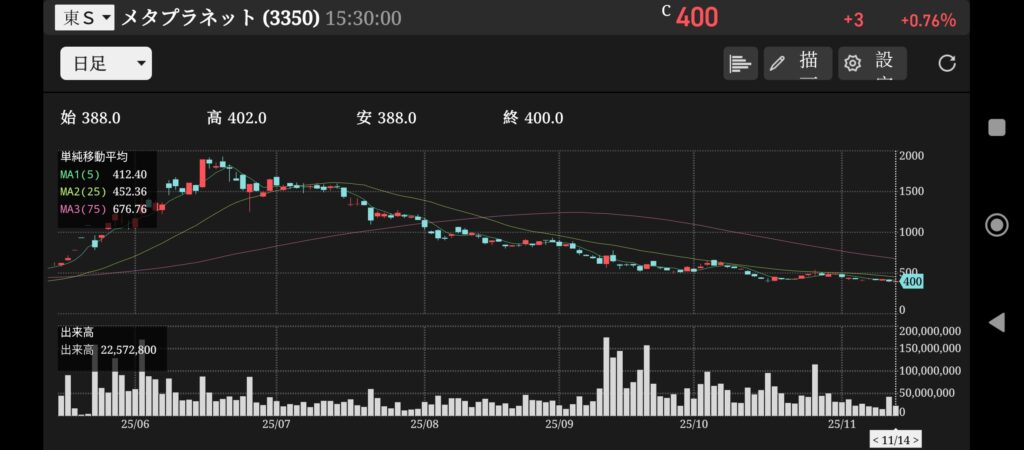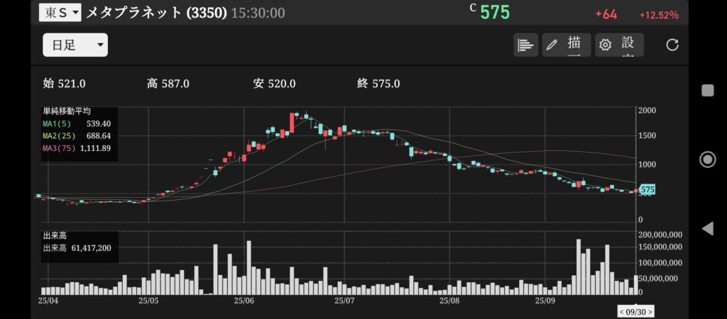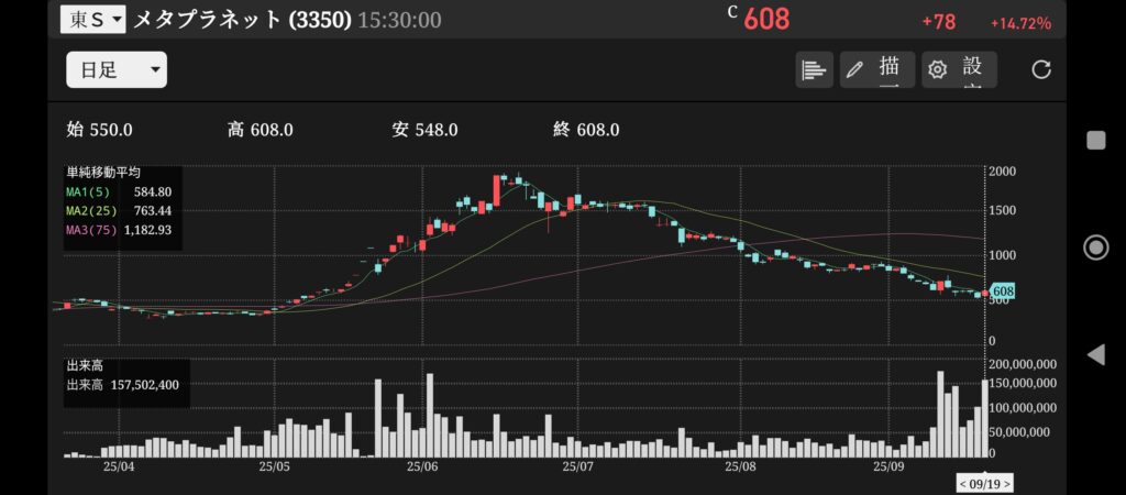 異常な出来高が続いているものの、上昇が続かなければ意味がありません。