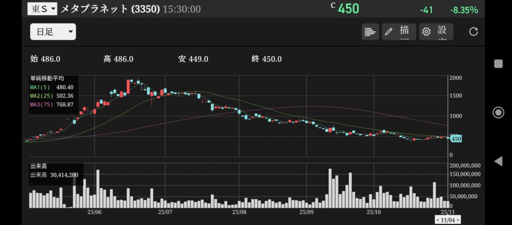 相場環境もあると思いますが、この銘柄独自の動きのほうが強いと思います。