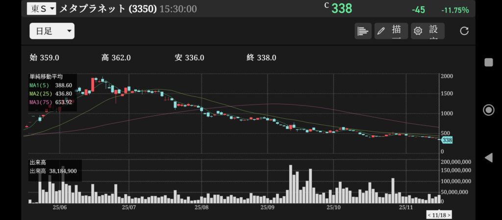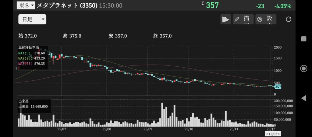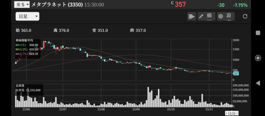 下落が続いていることは気になりますが、出来高が減ってきたのも気になります。