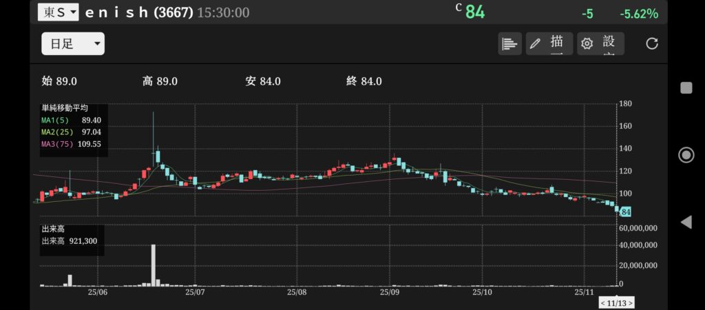 相場環境に影響した動きかもしれませんが、下落が続いています。