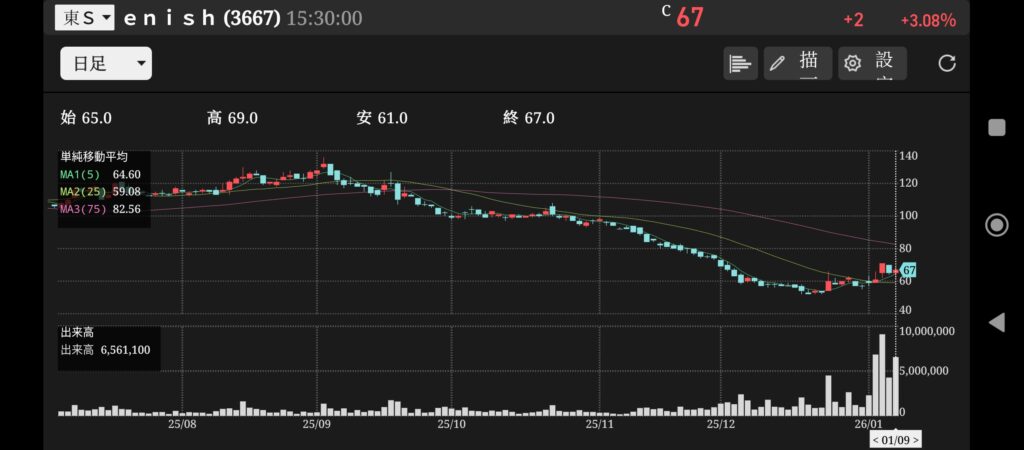 100円でもみ合った後の下落のため、このまま続くと思います。