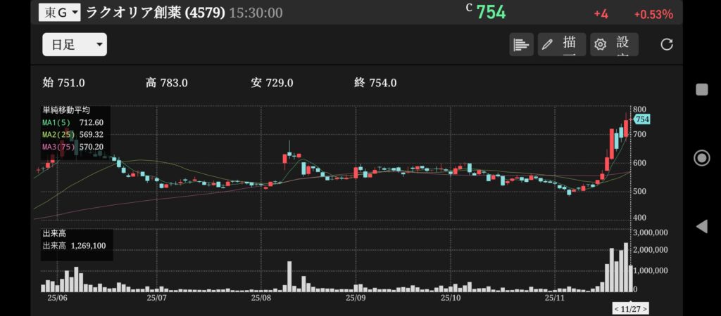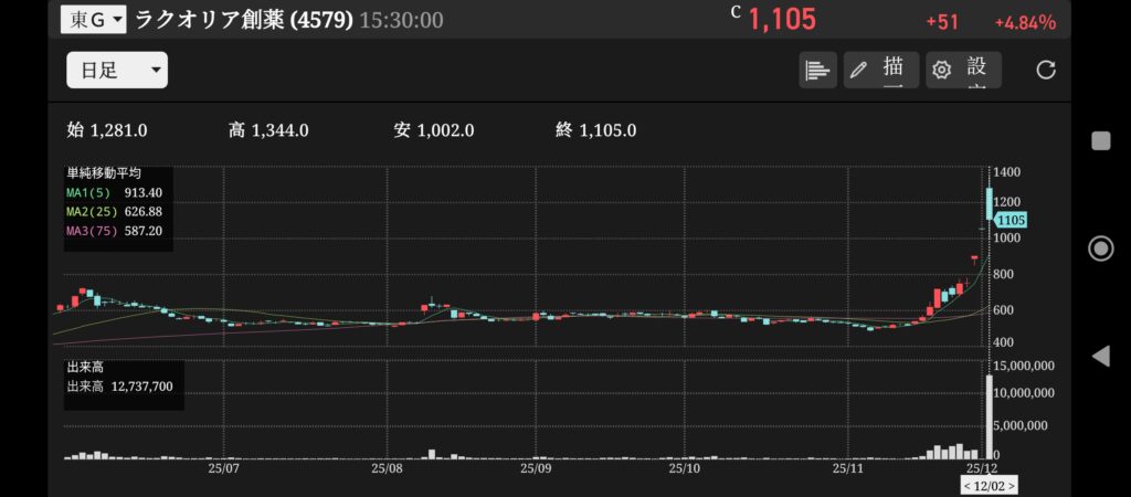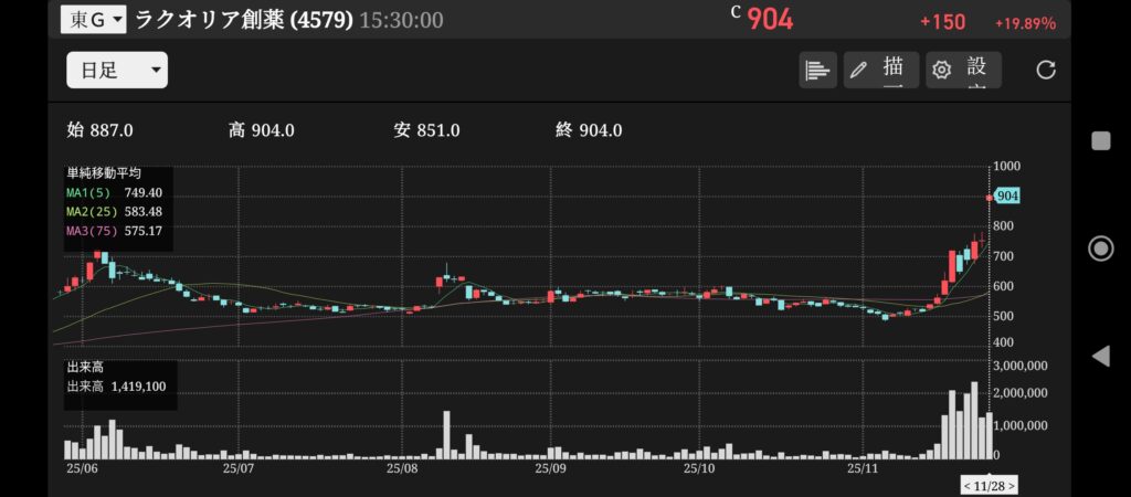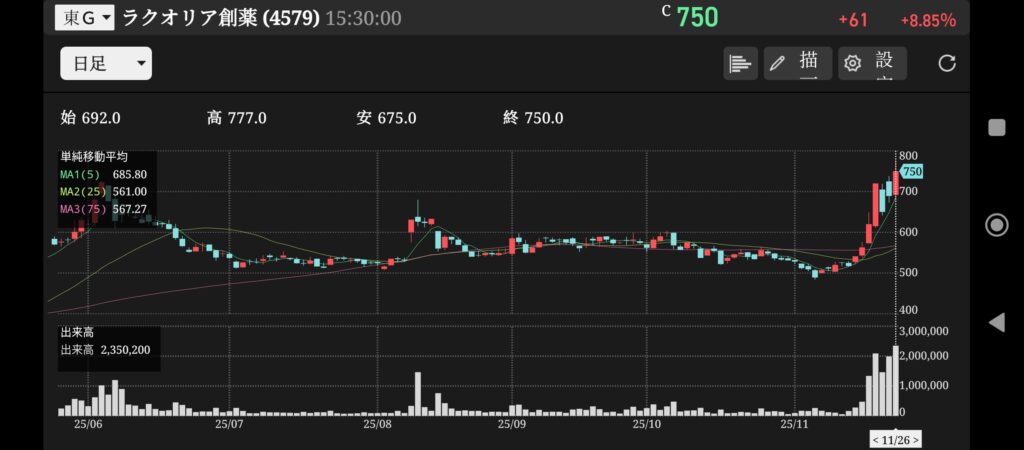 連日大きな出来高を伴っているため、さらに上昇していくと思います。