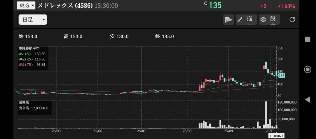 凄まじい出来高のため、しばらく動きが続くと思います。