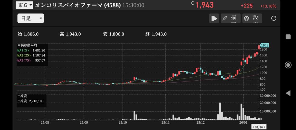 大きな出来高を伴っているため、さらなる上昇が期待できます。