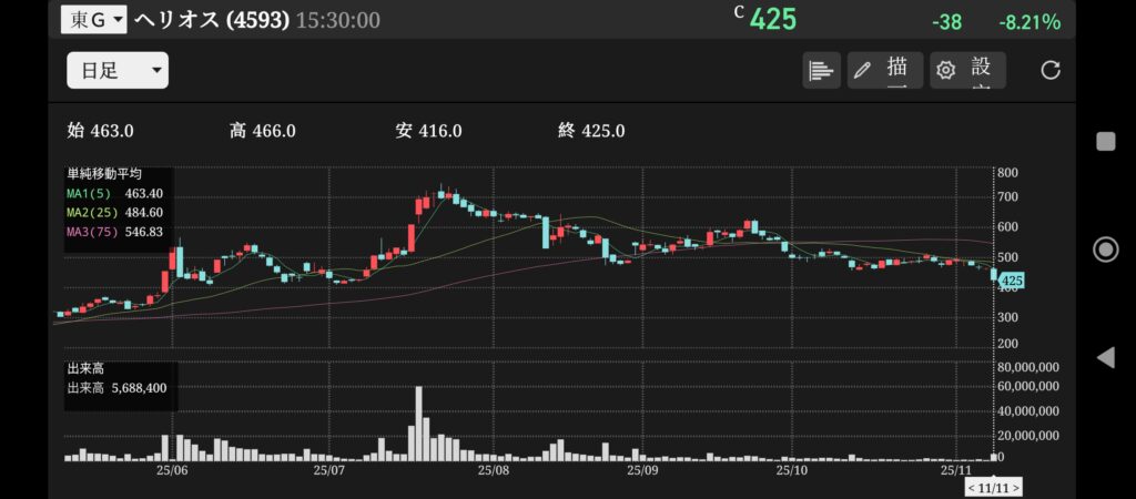 とはいえ、日足チャートで見るとたいした動きではないように見えます。
