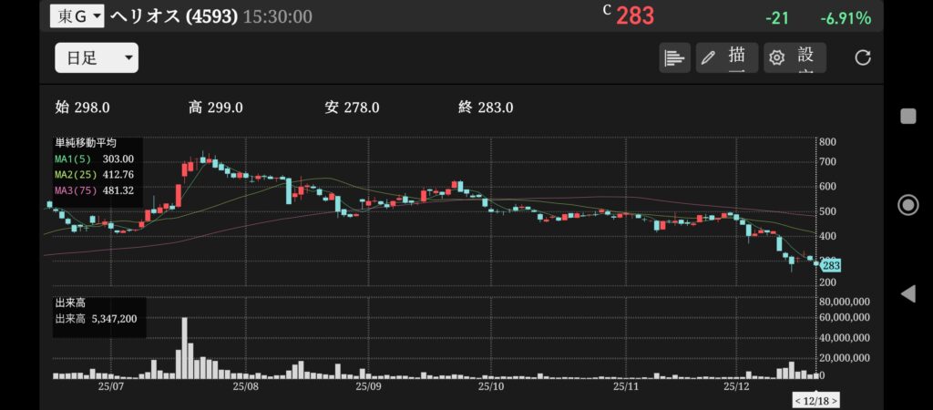 とはいえ、日足チャートで見るとたいした動きではありません。
