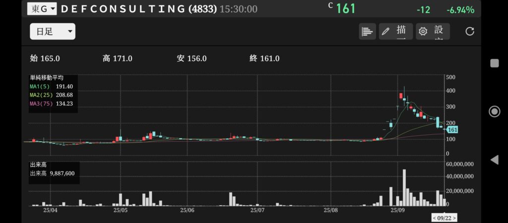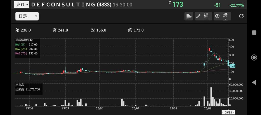 連続ストップ高したとは思えない動きでした。