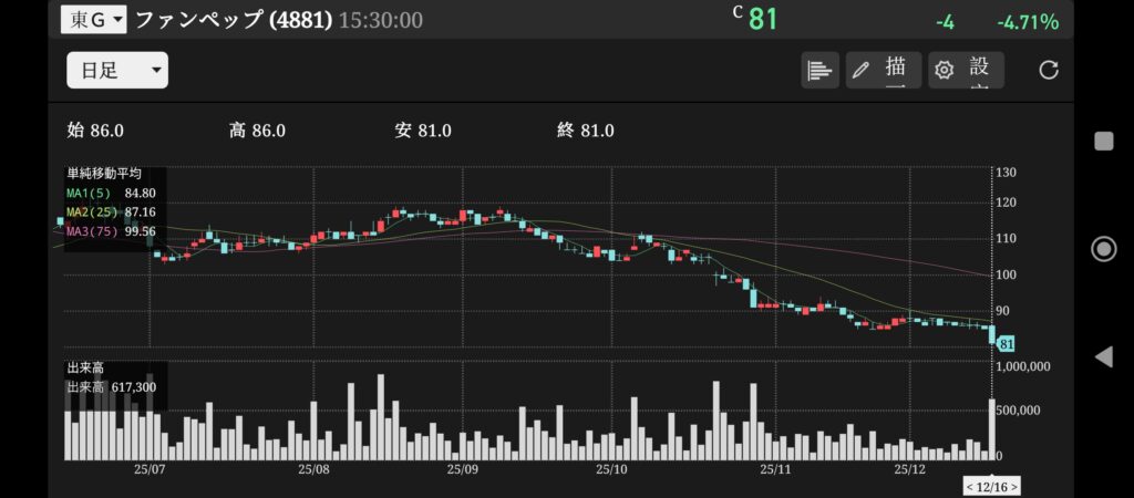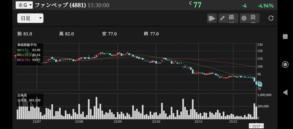 この5つの要素によって仕手株であると断定いたしました。