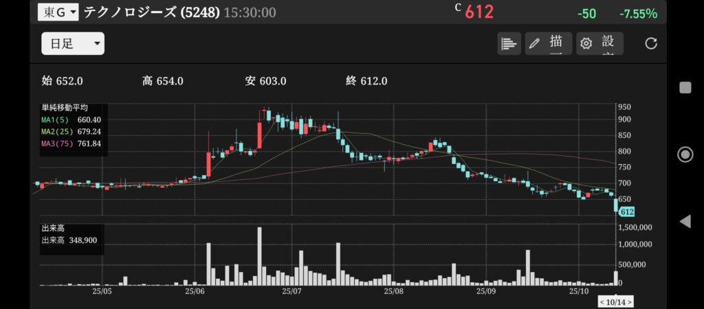 かなり大きく下落しているため、元の株価に戻りそうな勢いです。