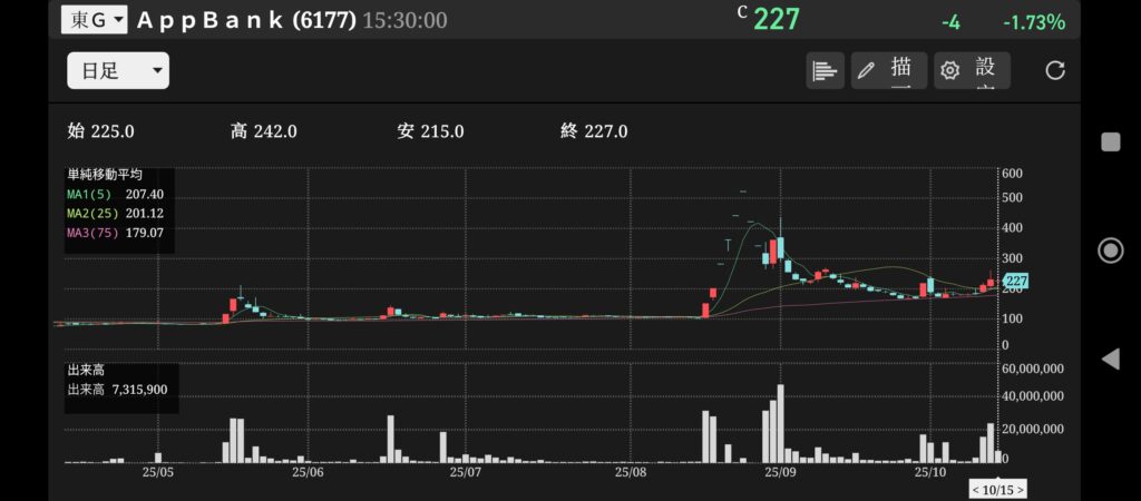 連続ストップ高のどこかで利益確定しておくことが、理想だったと思います。
