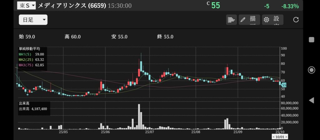 出来高の大きさから考えると、このまま上昇が続くと思います。