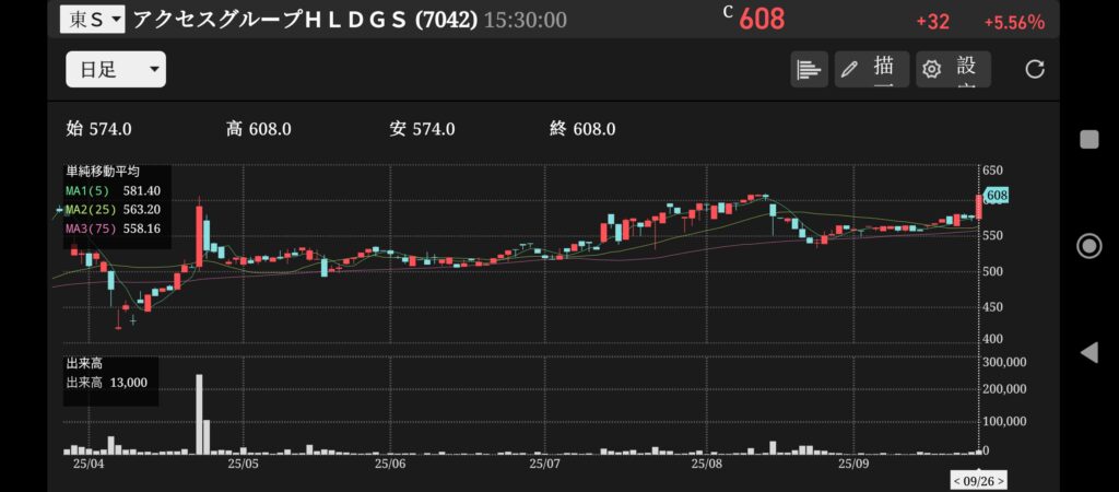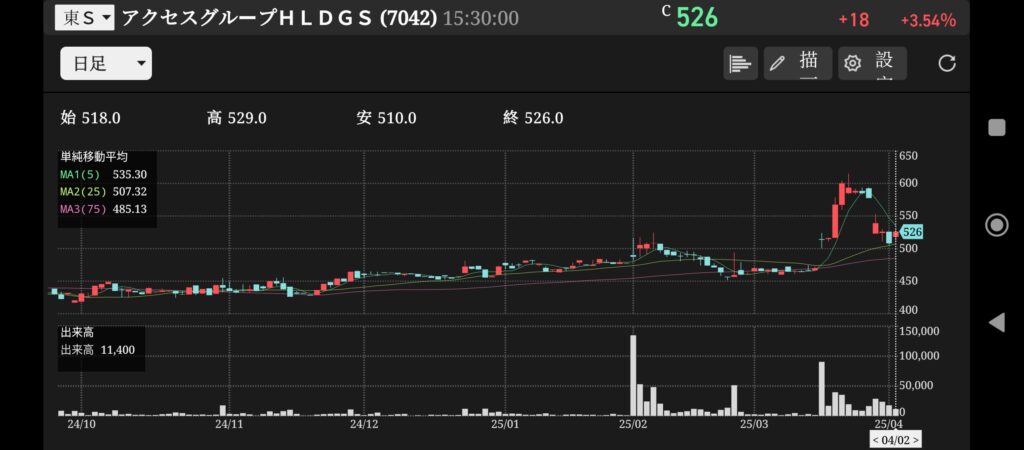 板が薄すぎるため難しい銘柄ですが、その分値幅は期待できます。