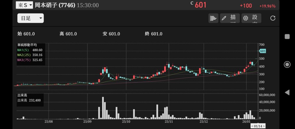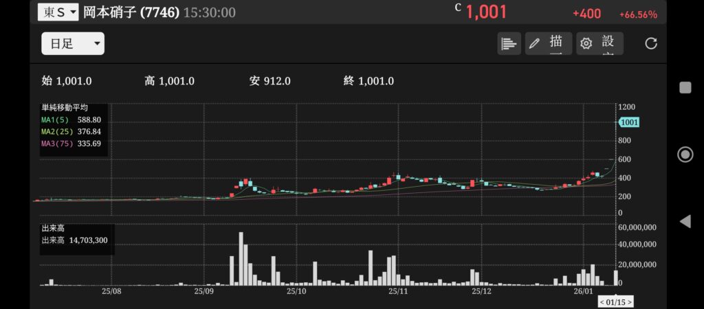 ストップ高は驚きです。