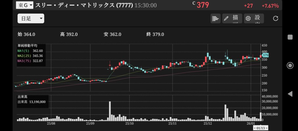 派手な動きはないものの、確実に上昇していく銘柄だと思います。
