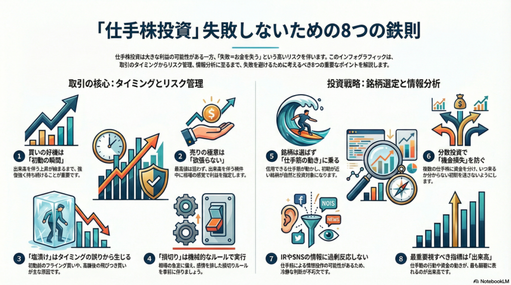 それでは、「仕手株投資で失敗しないために考えるべきこと8選」について一つ一つ順を追って進めていきたいと思います。